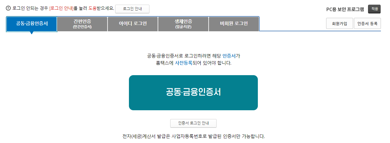 ● 공동인증서 로그인(금융인증서, 공인인증서)