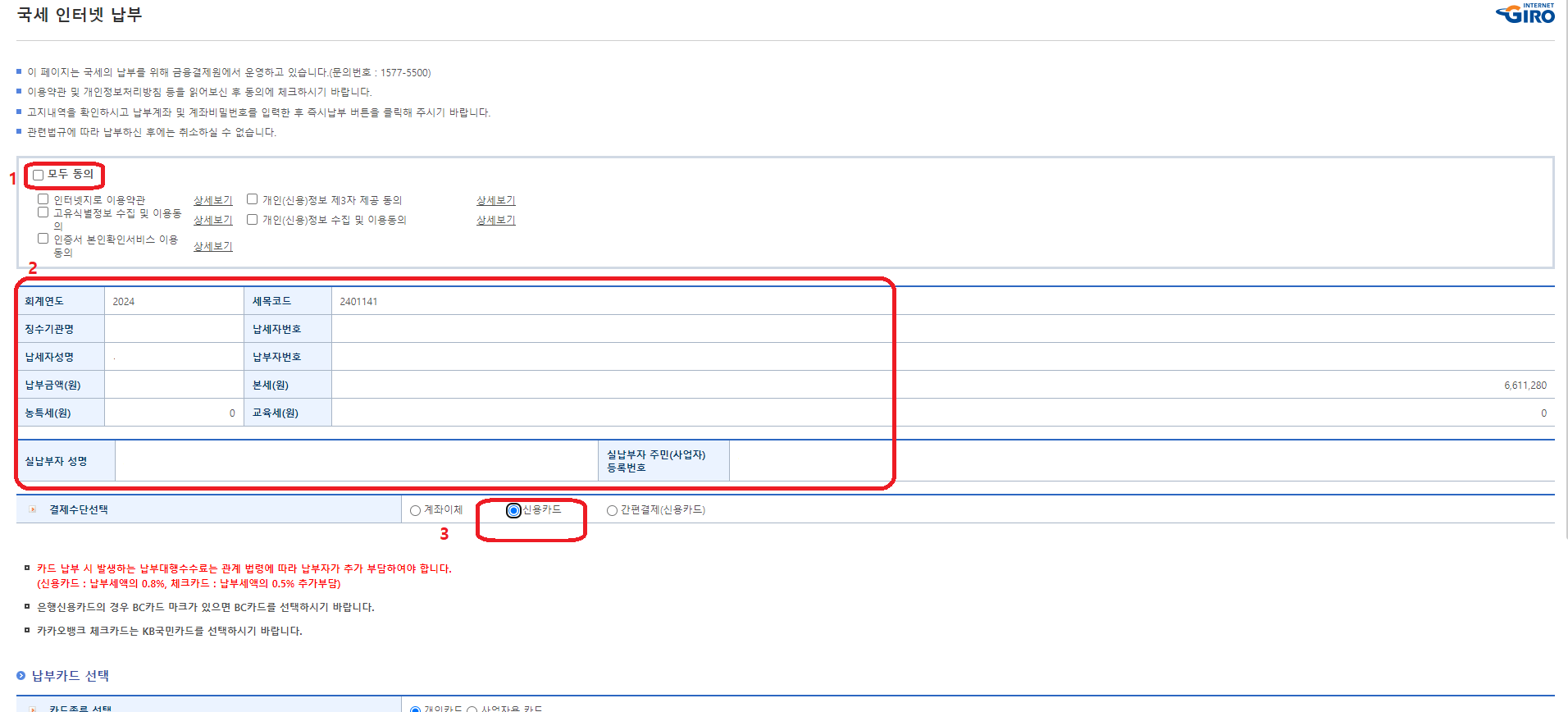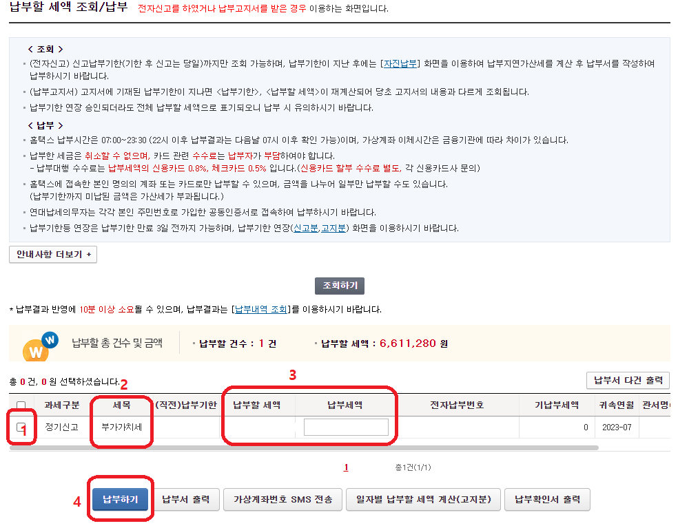 5. 국세 인터넷 납부 화면에서 순서대로 진행합니다.