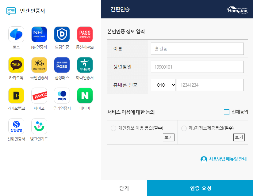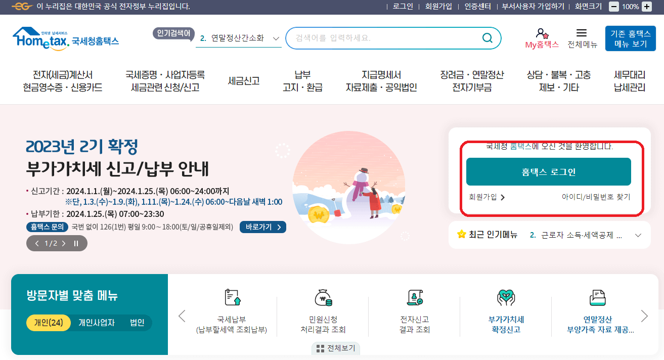 1. 아래의 버튼을 눌러 홈택스로 이동합니다.