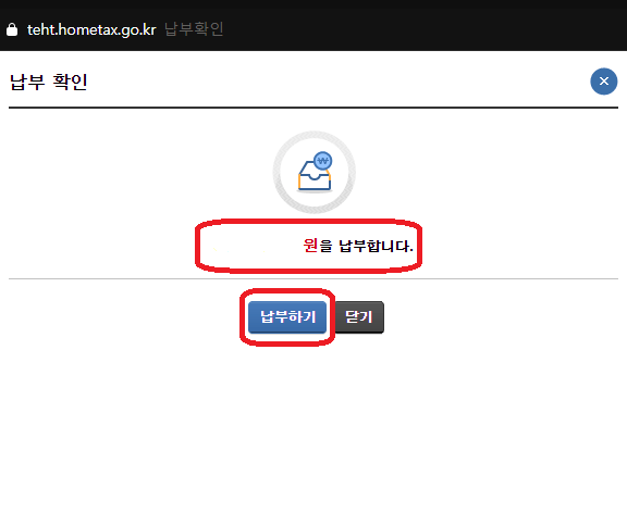 - 새창에서 세액을 확인 후 납부하기를 클릭
