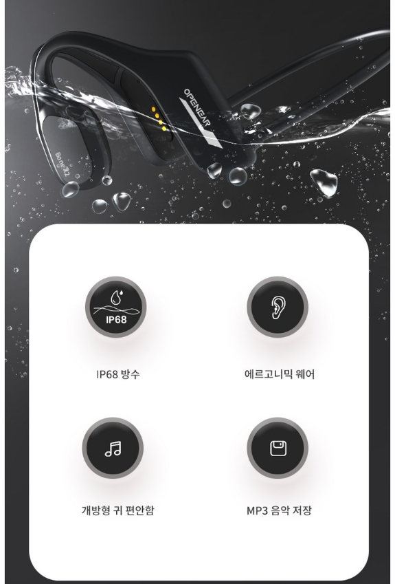 수영용 골전도 이어폰은 대부분 10~20만 원대를 형성하고 있는데, 5만 원대에 IP68 등급과 MP3 저장 기능까지 있는 제품은 드물죠.